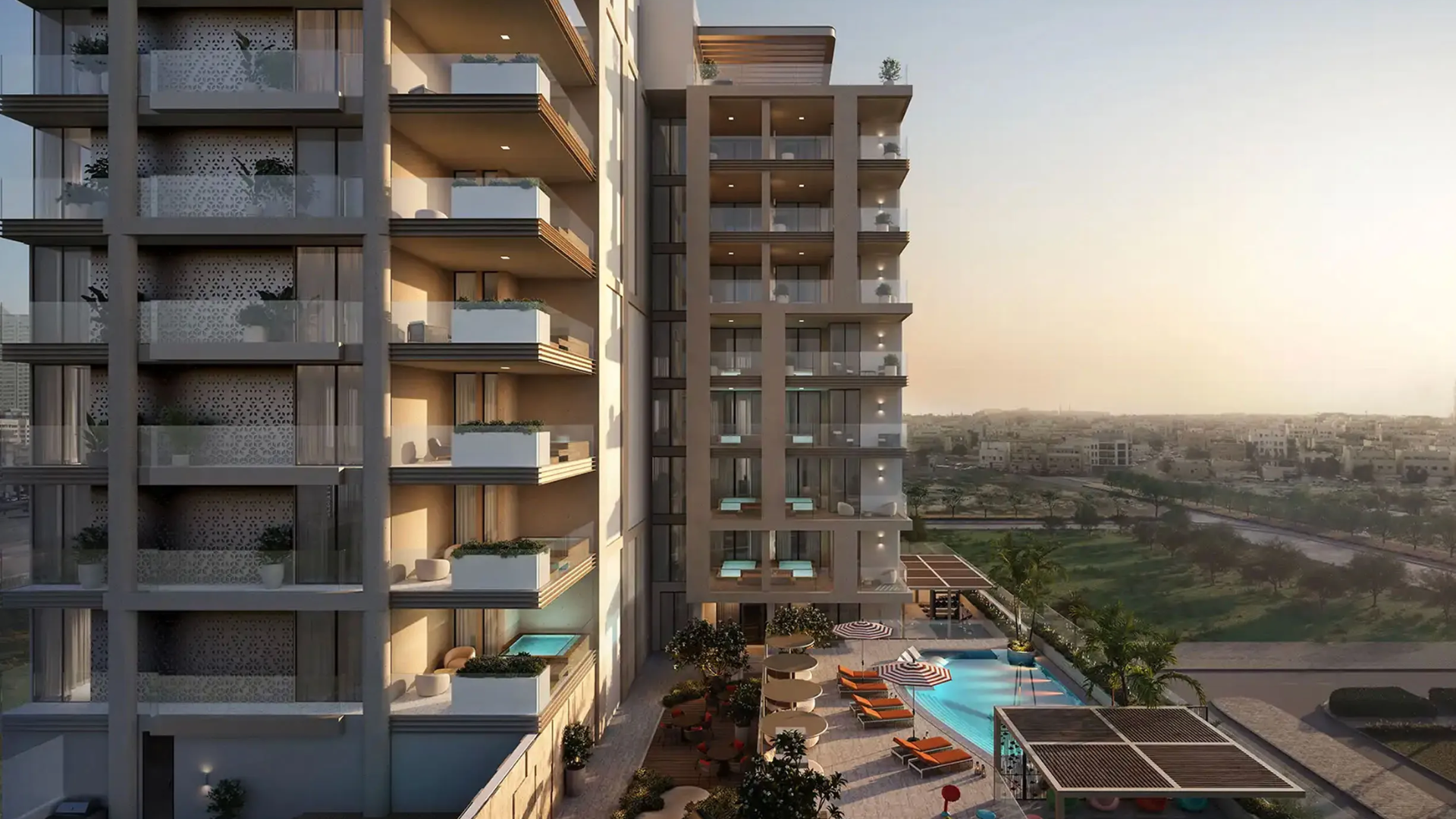 This G+8+roof development features an exclusive collection of just 79 residences, offering studios, along with 1, 2, and 3-bedroom apartments. Starting prices begin at AED 1M for studios, with a flexible 50/50 payment plan and handover scheduled for October 2027.